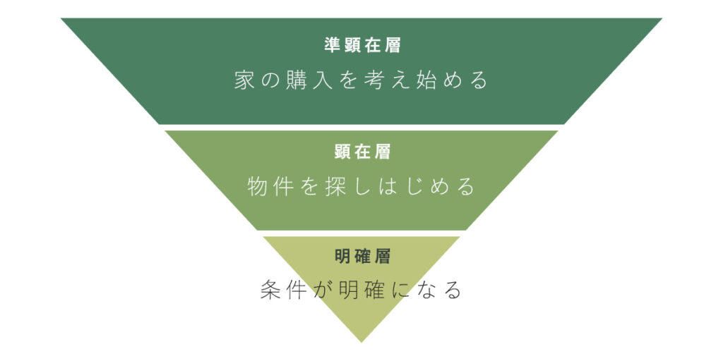 そのため、物件探しをスタートさせる顕在層の初期段階では、まずこの3つを決めるための情報収集がおこなわれます。