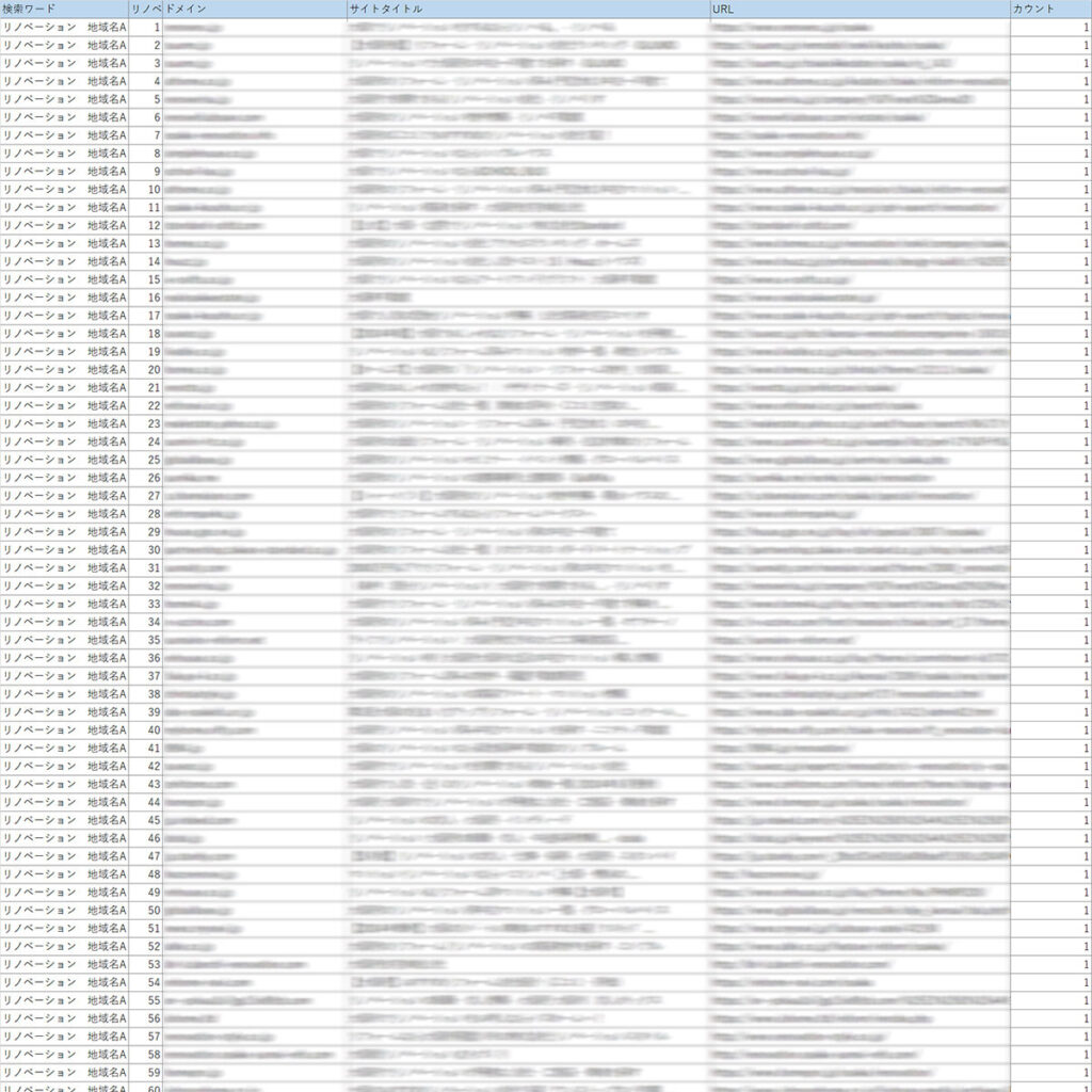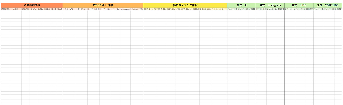 商圏エリアにある同業種の不動産会社をリストアップする際に、以下のような項目を取得しています。尚、毎回すべてを取得するわけではなく、リスト化の目的によって調整しております。